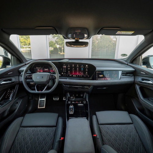 All'interno troviamo il sofisticato Audi Digital Stage, con Virtual Cockpit da 11,9", display OLED curvo da 14,5", head-up display con realtà aumentata e schermo passeggero (10,9”).